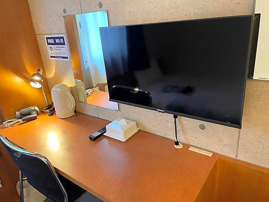 Keep in mind it's a small concrete building and you get a small concrete room with a tiny bathroom. It's plenty big enough unless you're a larger person or if you have a large suitcase (mine is carry-on sized). I'm putting this in both like and dislike because it's a fact, not a judgement. I was expecting a business hotel and that's what I got. It's old school, the doors are locked with a key that you turn in every time you leave. During the day there's always someone at the front desk to give you your key, however. It's small and they replace all the room amenities (comb, toothbrush, body cloth, towels) daily. They went a bit beyond by cleaning my room quickly and letting me sit in my room most of the day. I hurt myself on my trip to Japan and on a couple of cold and rainy days I took it easy and just rested in my room. The internet was plenty fast and ran all the time.
