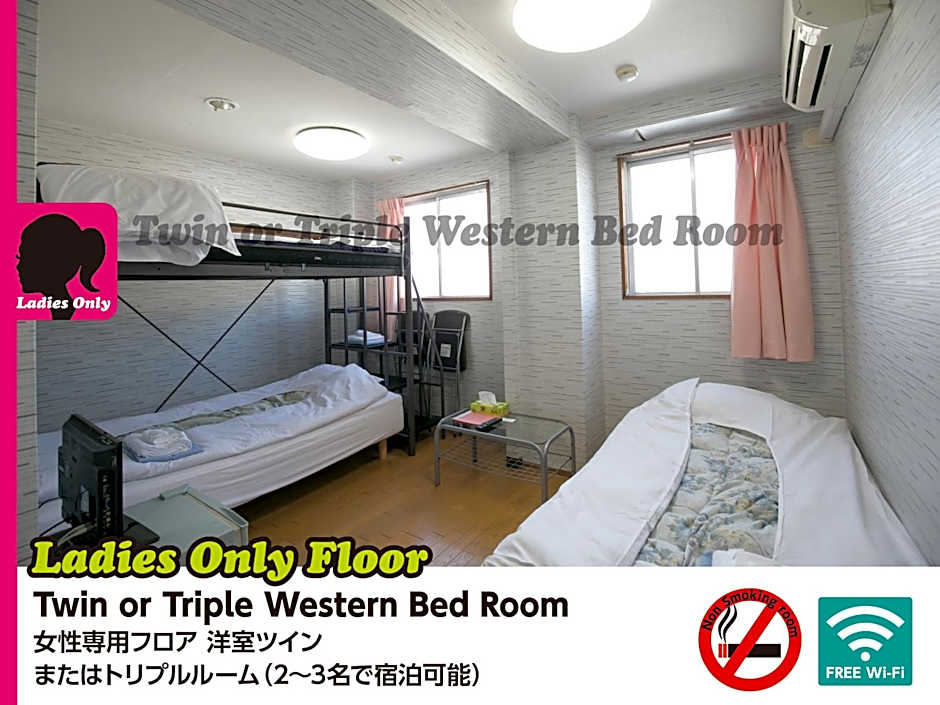 This female-only room comes with a fridge and a flat-screen TV. Toilet and bathroom facilities are shared with other guests. Towels, bathrobe, slippers and free toiletries including toothbrushes are provided.