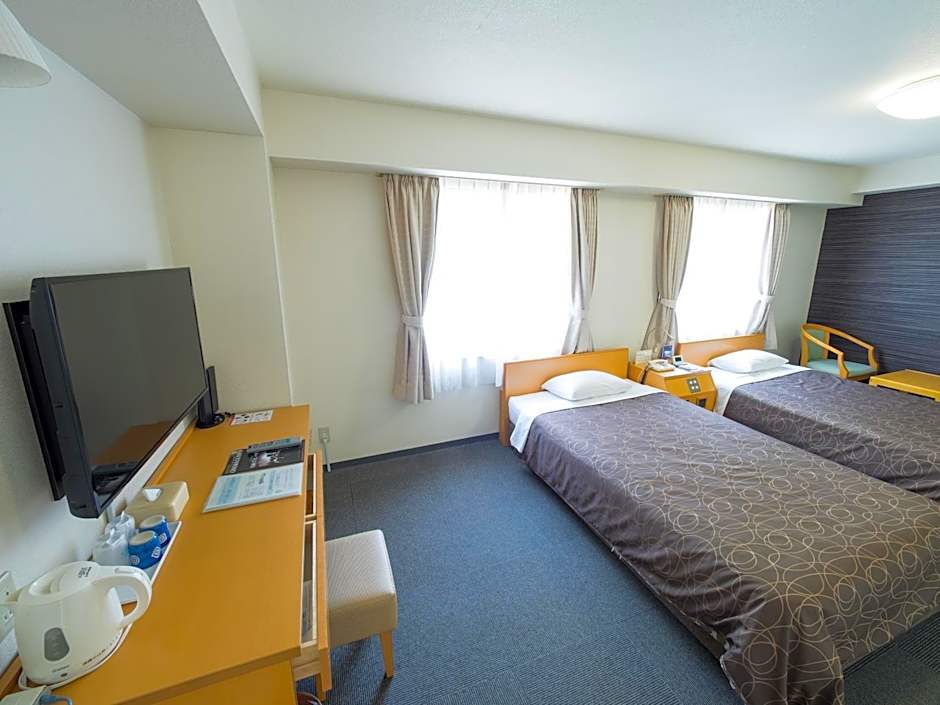 This air-conditioned room features a refrigerator, an electric kettle, and a TV with pay-per-view programs available for purchase. The private bathroom includes a hairdryer and slippers. Free wired internet access is available. An extra bed will be prepared for a 3rd guest, only when the booking is made for 3 people. Please indicate the correct number of guests at time of booking.