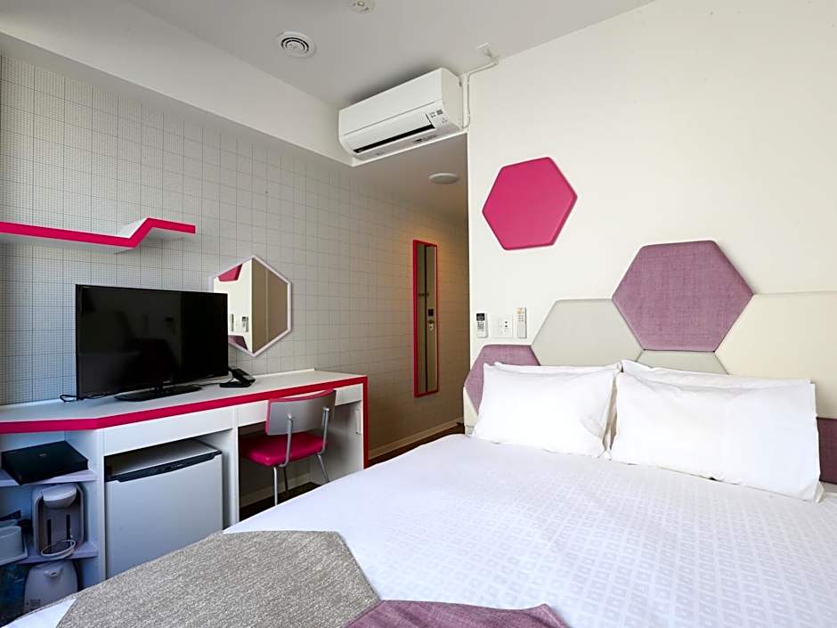 + really good place as the metro Station was immediately outside the hotel + room was good all you needed was there - TV only sharing with your phone no normal TV and so no News or funny Japanese TV shows 🤣 - the Metro ststion is very Close BUT NO ELEVATOR so if you have a Big baggage it's a lot of stairs to go up