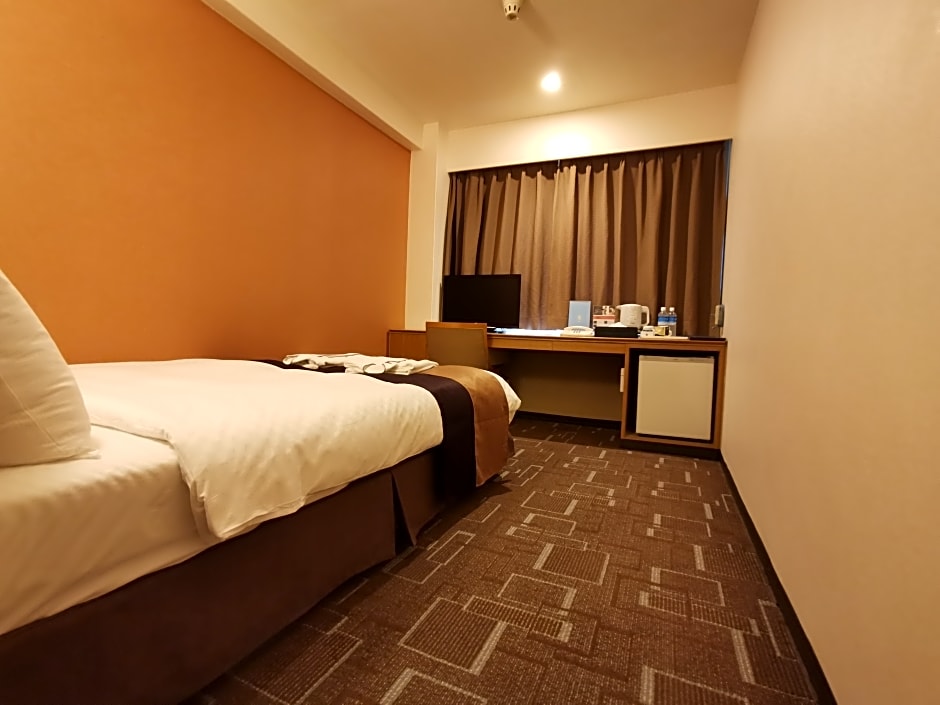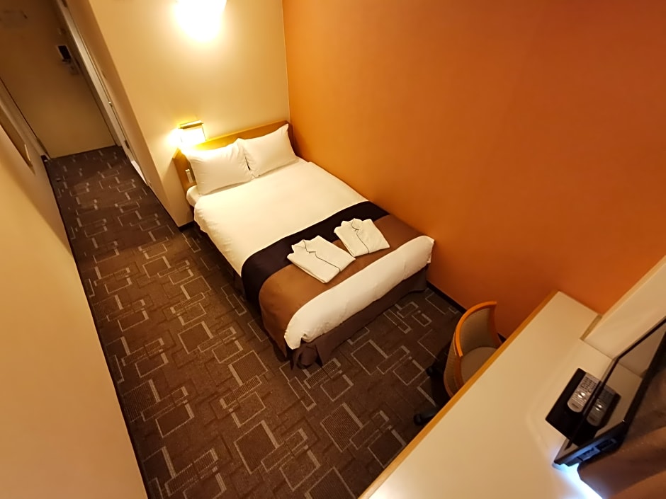 The excellent service upon checked in. I booked a double room for 2 adults and 1 child (12 yo), when checked in, the staff told me that the bed would not be comfortable to sleep for 3 persons, it was too small. He offered me to upgrade my room or stayed in the same room with 2 single beds which space will be a bit narrow if I didn't mind. I accept the 2nd option. The room was clean, hotel is near to station, shinsaibashi and dotonbori. Neighborhood is quite.