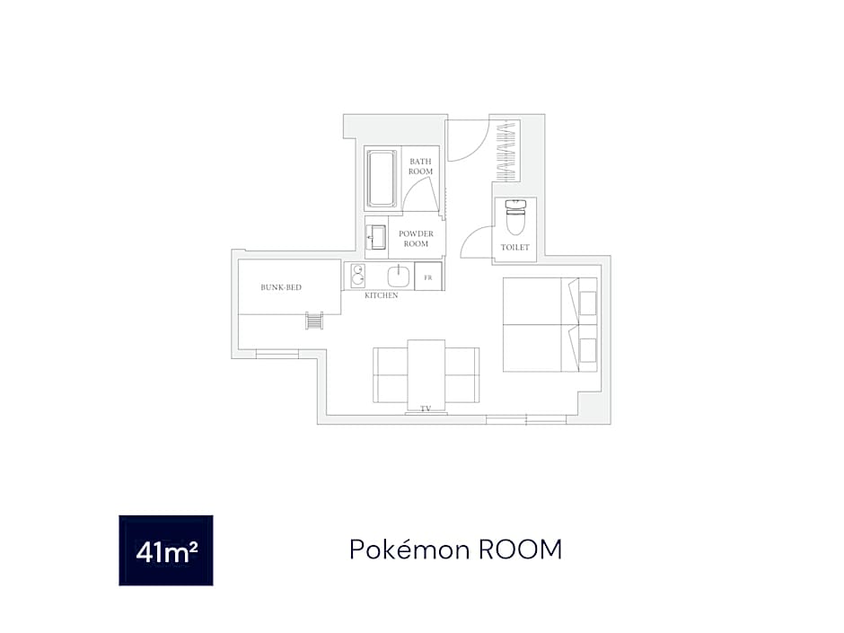 Pokemon Room (Renewal) is 441 square feet and includes either bunk beds or 2 single beds 80-130 width and has a Disability-friendly bathroom.
