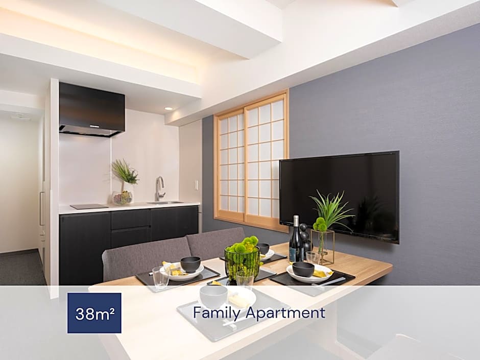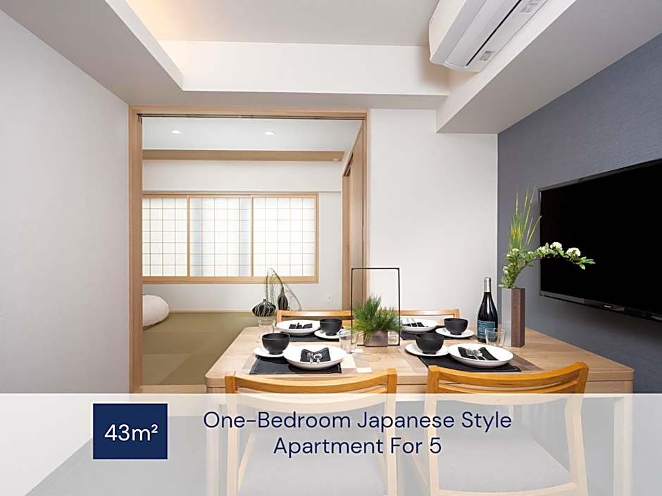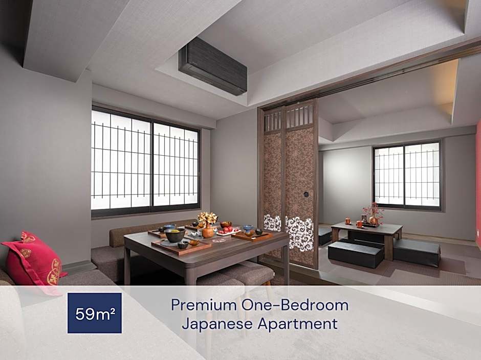 Premium One-Bedroom Japanese Apartment is 635 square feet and includes either bunk beds or 5 single beds 80-130 width plus hairdryer and safe and has a Disability-friendly bathroom.