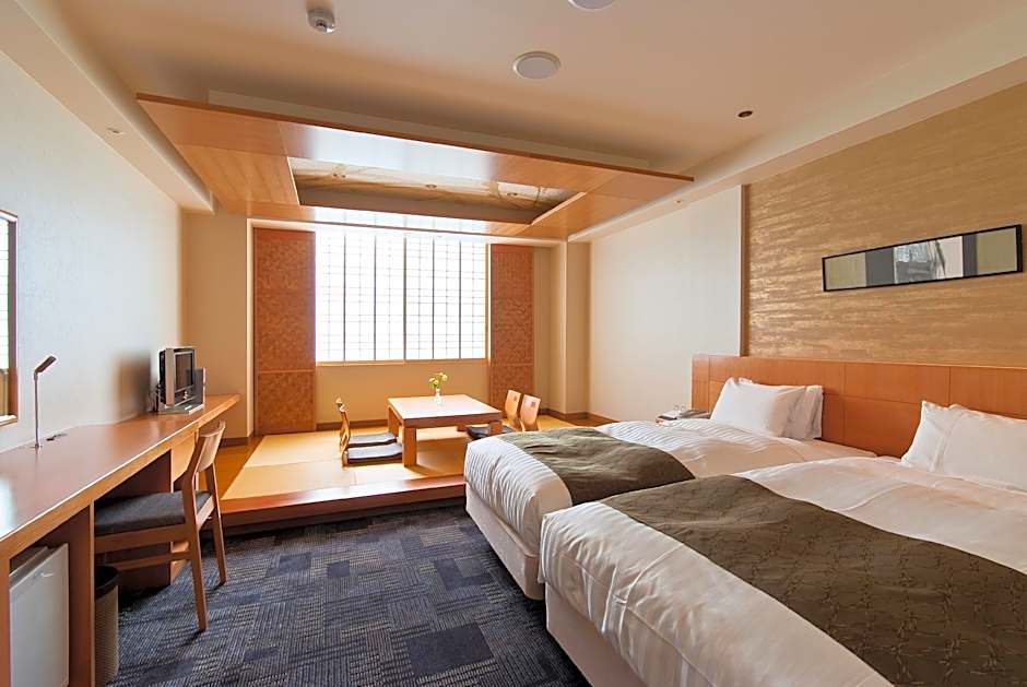 Features Western-style beds and a tatami (woven-straw) seating area. This spacious air-conditioned room features Simmons beds, a flat-screen TV and a fridge. Includes an electric kettle with green tea bag. The private bathroom comes with a hairdryer and toothbrush sets.