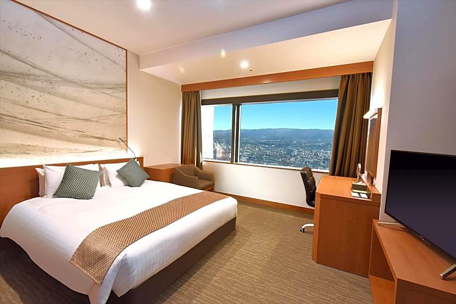 Wonderful suite rooms with abundant space. We had 2 rooms for 2 adults and 2 older teens. (Teens declared it the best room of the 16 day trip.) It was very western in style and fittings, so plenty of space for 6'7" husband. Very easy to get to KIX for an early departure. And the views of the airport and Osaka at night were an unexpected treat!
