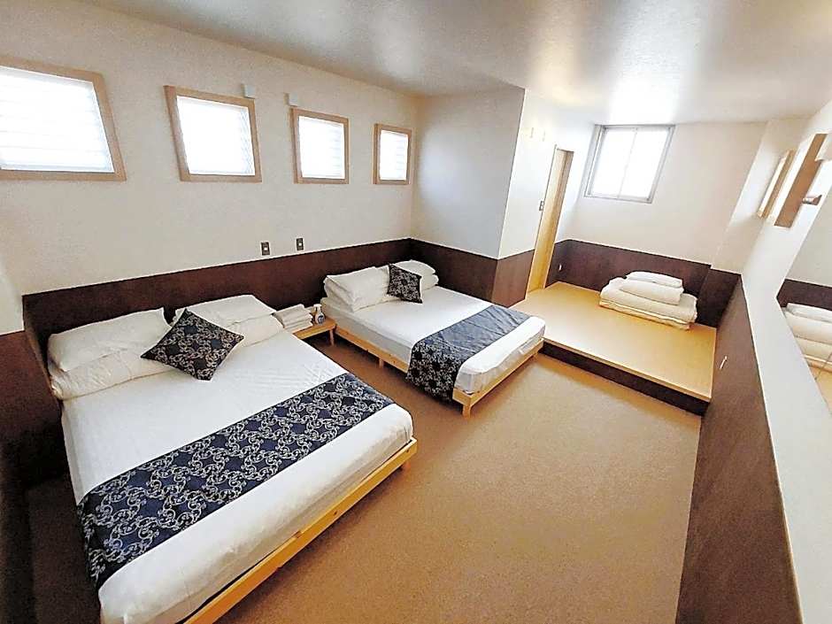 The family room provides air conditioning, tatami, as well as a private bathroom featuring a walk-in shower and a bidet. The unit offers 3 beds and 2 futons.
