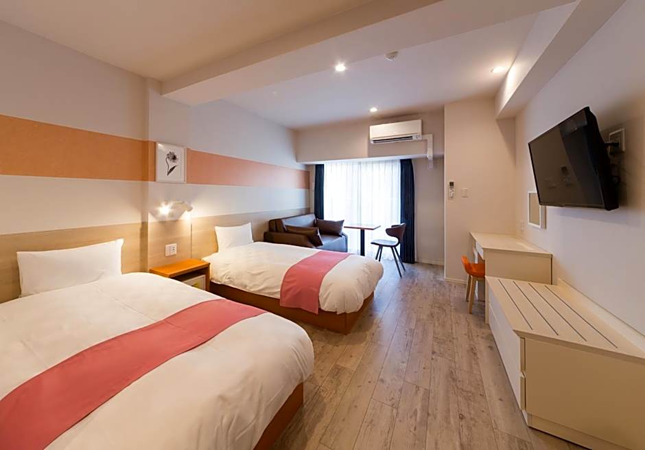 This room features 2 single beds (47 in x 81 in), a tatami (woven-straw) floored area, TV, and a refrigerator. The private bathroom includes a bath, shower and toilet. A safety deposit box, an electric kettle and hairdryer are also included.