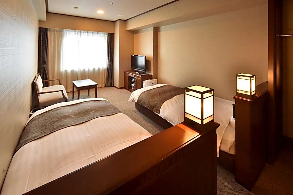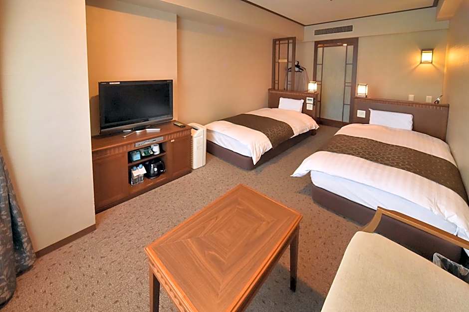 Features Western-style beds and a tatami (woven-straw) seating area. Air-conditioned room with free internet access, a flat-screen TV and refrigerator.