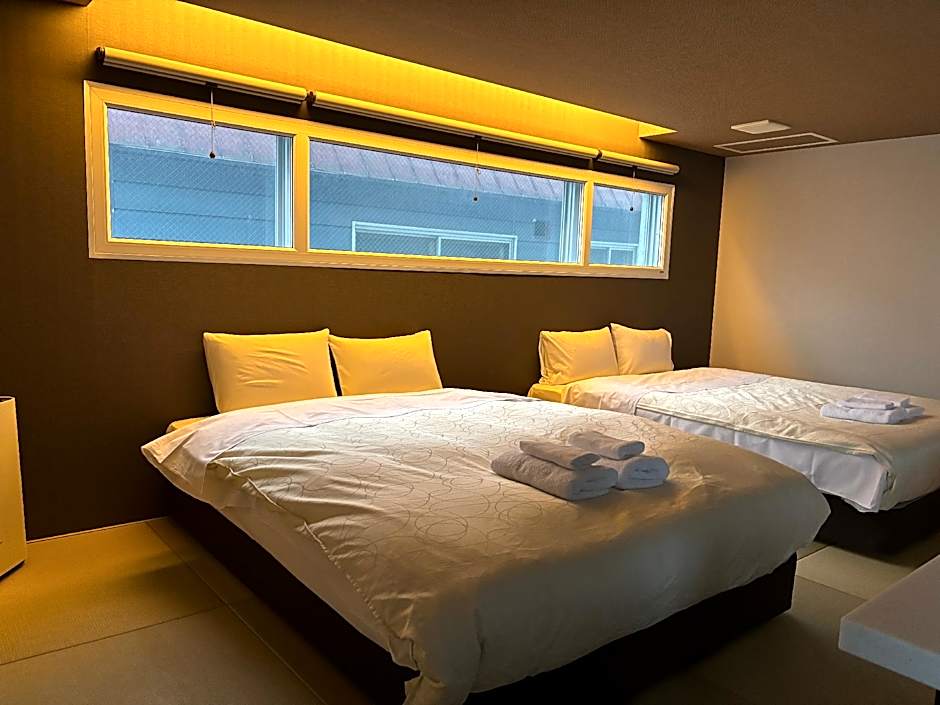 Guests will have a special experience as the quadruple room features a hot tub. The quadruple room includes a private bathroom, well-fitted with a bath, a shower, a bidet, a hairdryer and slippers. In the fully equipped kitchen, guests will find a stovetop, a refrigerator, kitchenware and a microwave. The air-conditioned quadruple room offers a flat-screen TV with streaming services, a washing machine, tatami, soundproof walls as well as sea views. The unit has 4 futons.