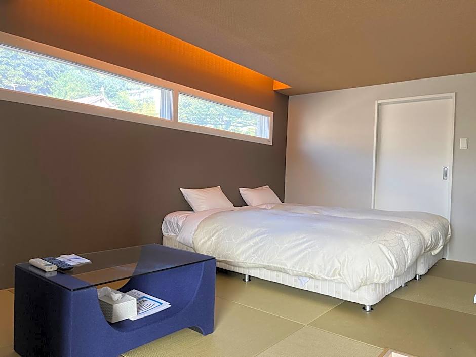 This twin room provides a hot tub. The twin room includes a private bathroom, well-fitted with a bath, a shower, a bidet, a hairdryer and slippers. Meals can be prepared in the well-fitted kitchen, which has a stovetop, a refrigerator, kitchenware and a microwave. The spacious air-conditioned twin room offers a flat-screen TV with streaming services, a washing machine, tatami, soundproof walls as well as mountain views. The unit has 2 beds.