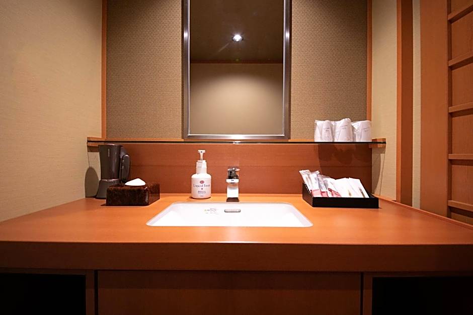 This junior suite features an open-air hot-spring bath with lake views. It features a Japanese interior with a tatami (woven-straw) floor and Western beds. A balcony, air conditioning is available and an electric kettle, flat-screen TV and air-purifier is equipped in the room.