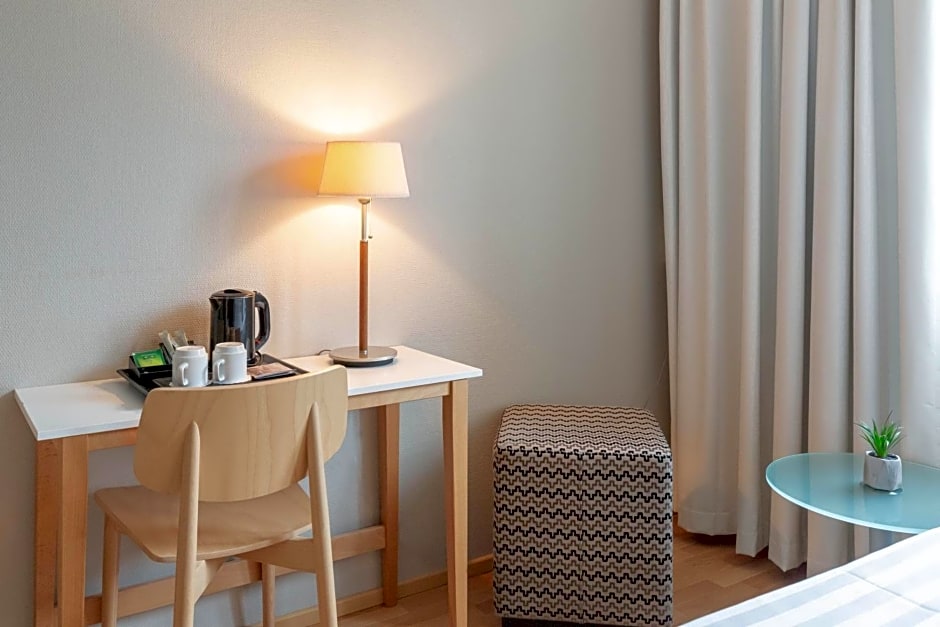 Simply furnished room with a fridge and an electric kettle with green tea. Slippers and toiletries are provided. Pay TV programs are on offer.
