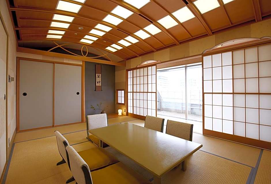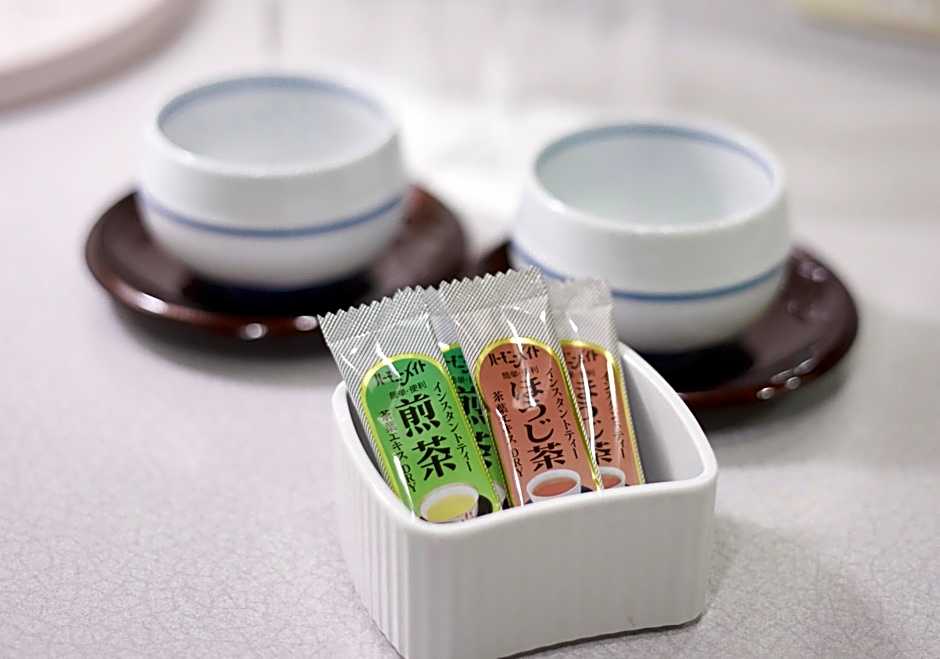 The spacious quadruple room features air conditioning, tatami, as well as a private bathroom boasting a bath and a shower. The quadruple room has carpeted floors, a seating area with a flat-screen TV with satellite channels, a wardrobe, a safe deposit box, as well as an electric kettle. The unit has 4 futons.