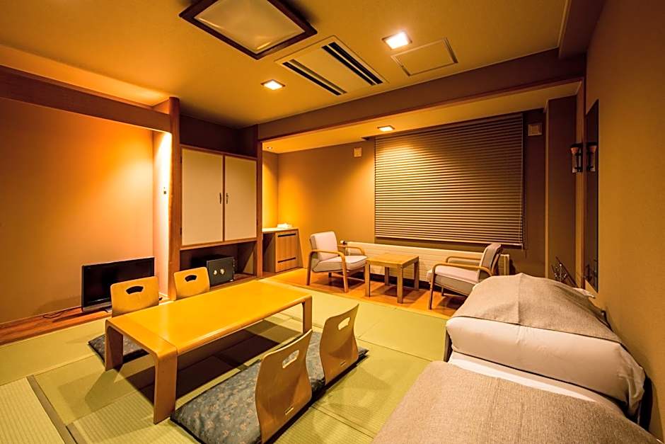 Providing free toiletries, this twin room includes a shared bathroom with a hairdryer and slippers. The twin room provides tatami, a safe deposit box, yukata, heating and a flat-screen TV. The unit offers 4 futons.