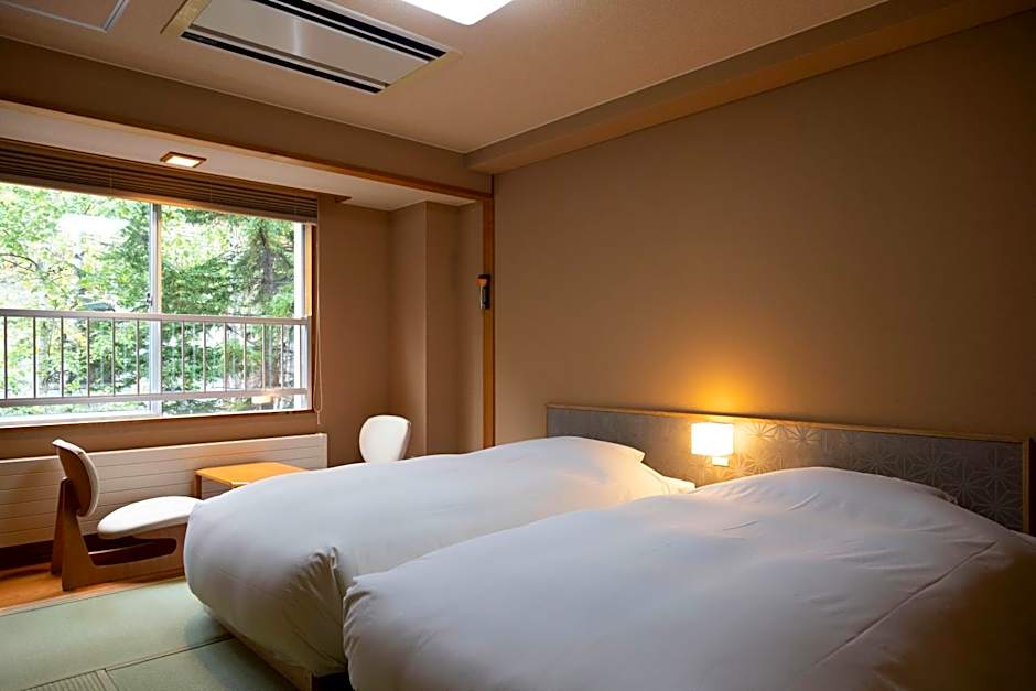 Offering free toiletries, this twin room includes a shared bathroom with a hairdryer and slippers. The twin room offers tatami, a safe deposit box, yukata, heating and a flat-screen TV. The unit offers 2 beds.