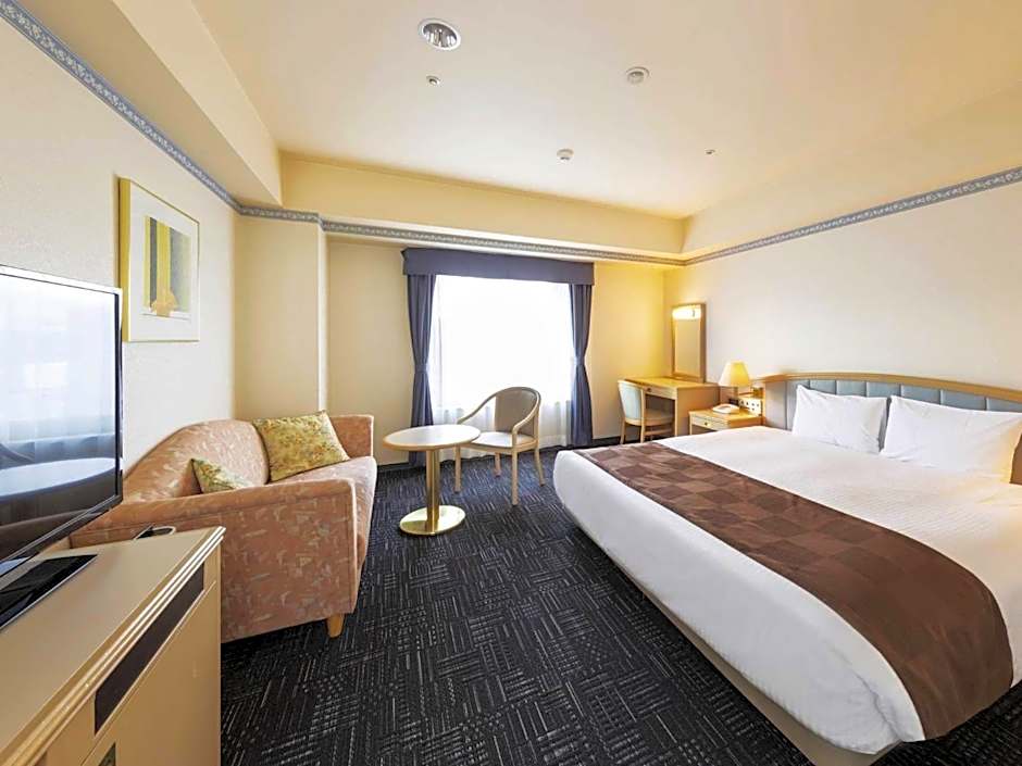 The value for money. The size of the room was big enough for me, the room looked like having been modified from a twin room to a single room. There was a sofa in place of a removed bed and a big space. The location is in a quiet business area of the city, the hotel was facing to the prefecture government building and its garden. A kind staff brought an iron to my room, when I asked for one.