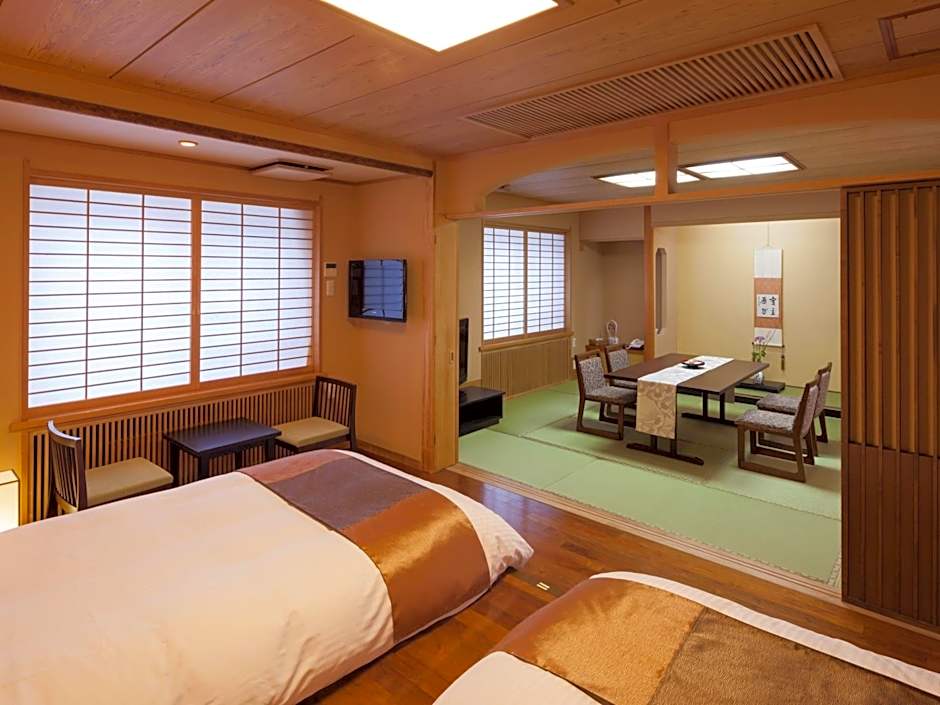 Offering free toiletries, this quadruple room includes a private bathroom with a bath, a shower and a hairdryer. The spacious air-conditioned quadruple room offers a flat-screen TV with satellite channels, tatami, a seating area, a wardrobe as well as mountain views. The unit offers 2 beds and 2 futons.