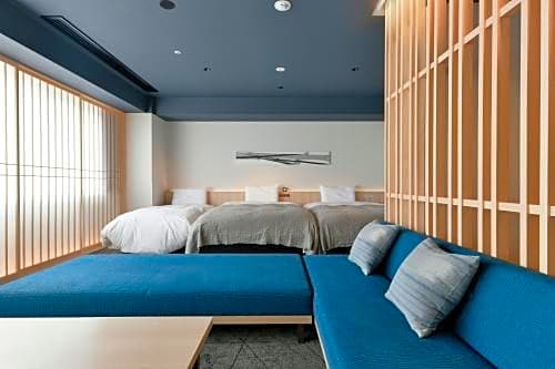 The triple room includes a private bathroom, well-fitted with a bath, a shower, a bidet, a hairdryer and slippers. The air-conditioned triple room offers a flat-screen TV, tatami, an electric kettle and a carpeted floor. The unit offers 2 beds and 1 futon.