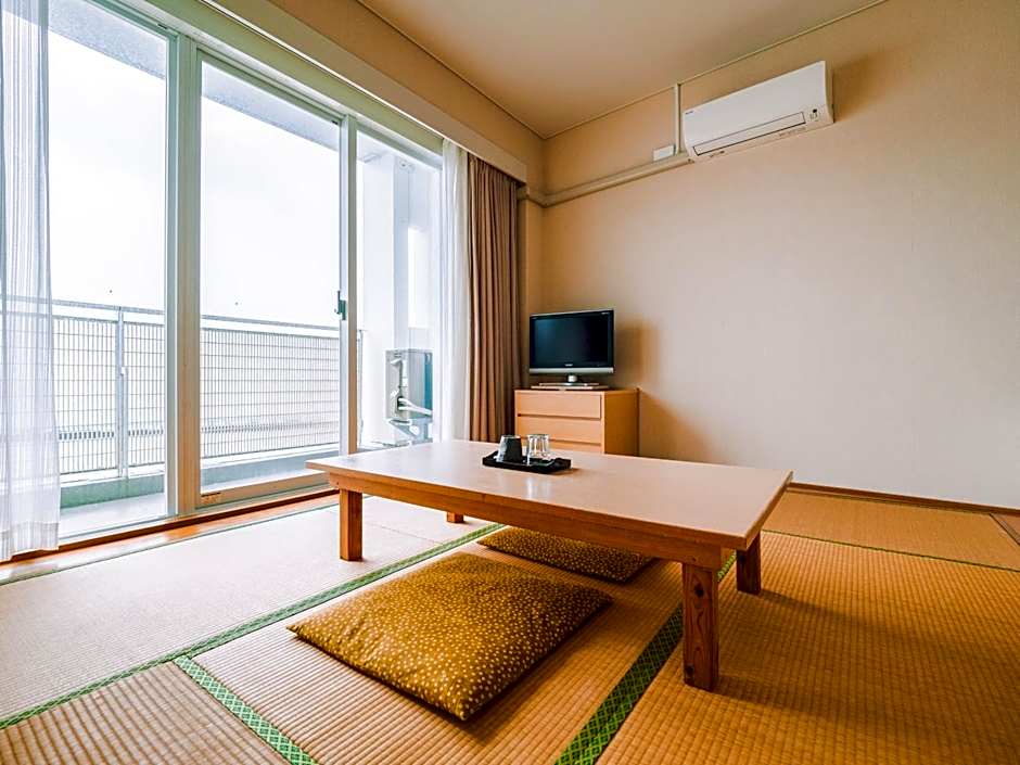 The triple room offers air conditioning, tatami, a balcony with sea views as well as a private bathroom boasting a bath. The unit has 3 futons.