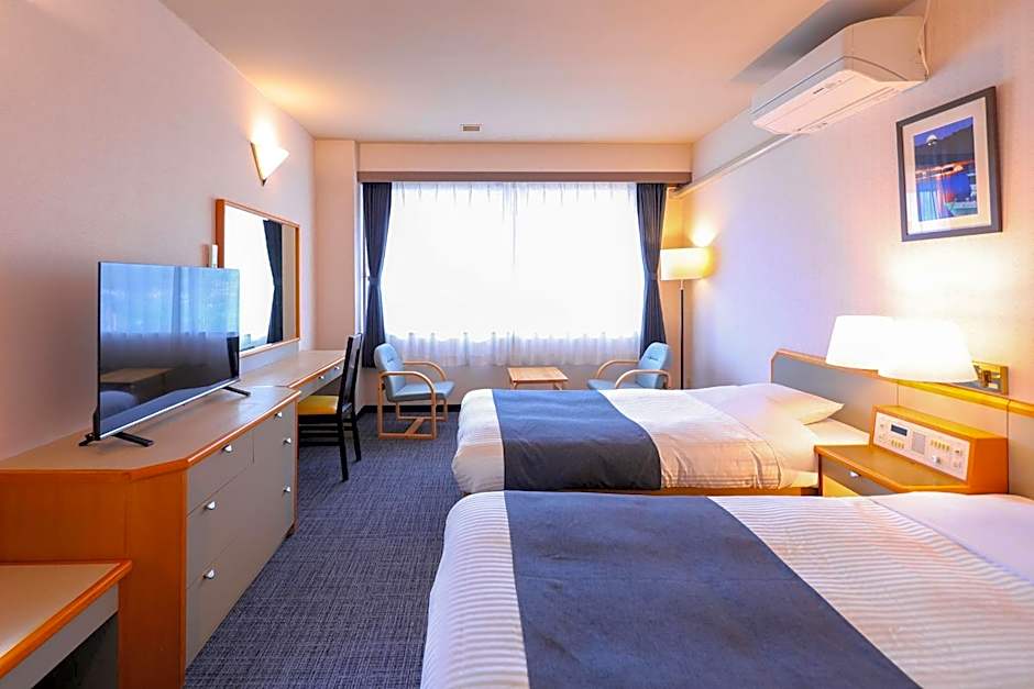 The spacious twin room offers air conditioning, tatami, as well as a private bathroom boasting a bath and a shower. This twin room has an electric kettle, heating and a flat-screen TV. The unit has 2 beds.