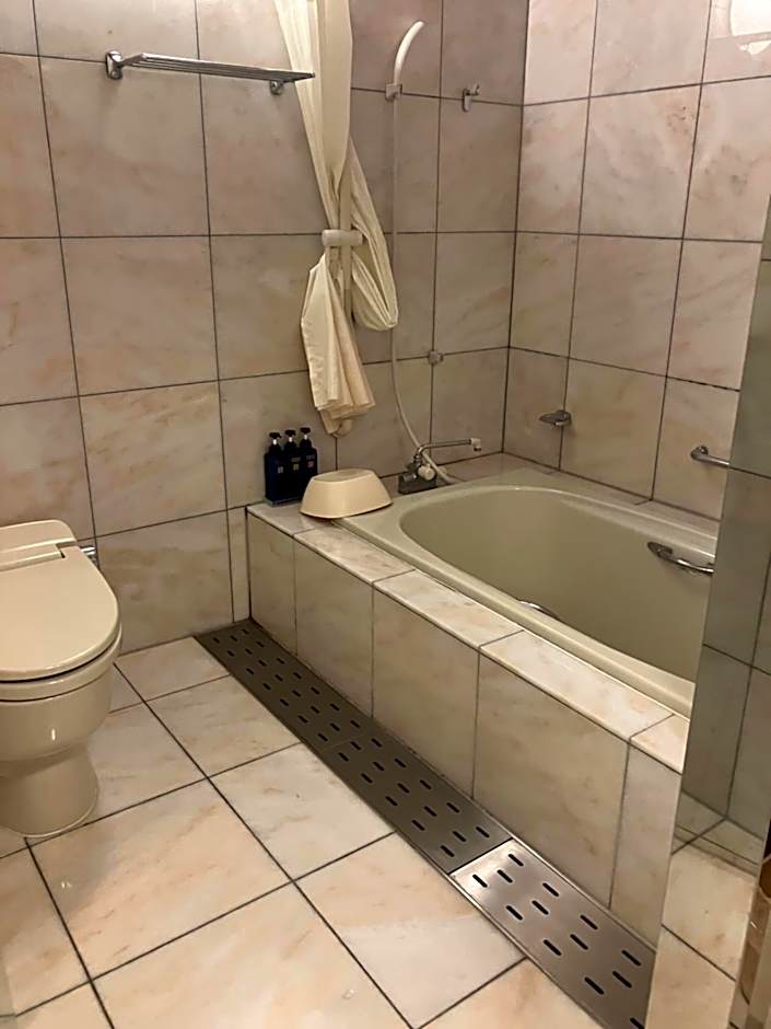 The family room offers air conditioning, tatami, a balcony with an inner courtyard view as well as a private bathroom boasting a bath. The unit has 5 futons.