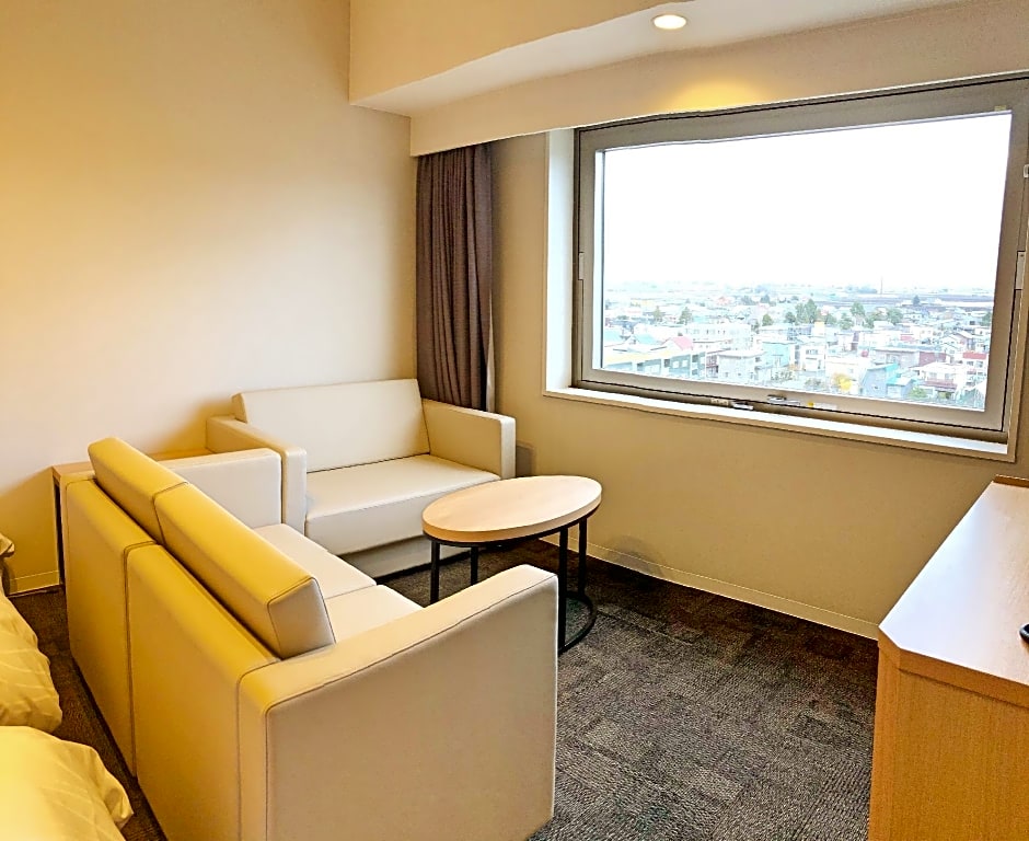 The hotel is located opposite a very unattractive railway yard, but some upper room views of the mountains, can be forgiven. We chose the town views, which were also, not the best, but also had nice views in the distance. The roof Terrace has the best views, no attractive lounge or seating setup... just a roof & few chairs. The 9th floor Onsen, were very popular & super hot, with a choice of private 1 to 6 person or traditional 'naked' public bathing. Free offsite parking Coin operated laundry Free ice confectionery in 9th floor Community waiting room. Service, from the car park, foyer, lobby to check out, is the usual Japanese Full Courtesy.