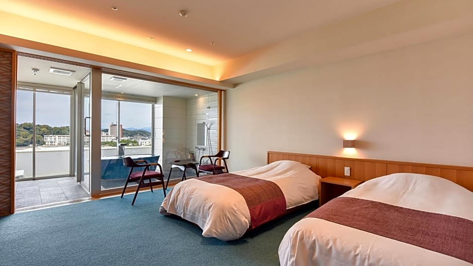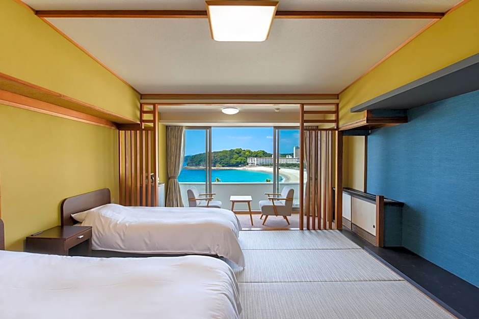 Providing free toiletries, this twin room includes a private bathroom with a bath, a shower and a hairdryer. The air-conditioned twin room provides a flat-screen TV, a safe deposit box, an electric kettle, yukata as well as sea views. The unit offers 2 beds.