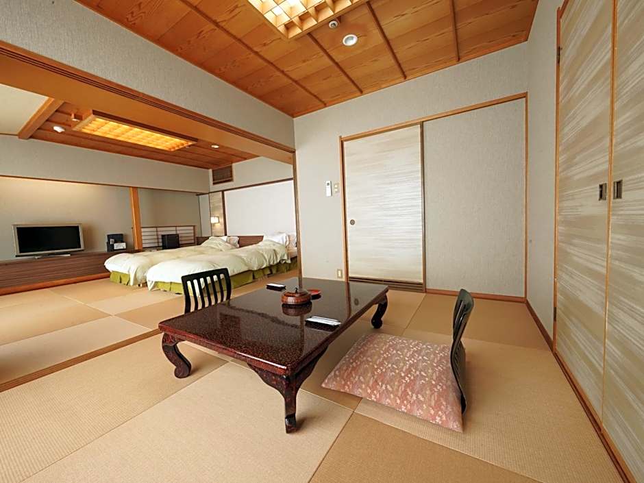 The spacious twin room provides air conditioning, tatami, as well as a private bathroom featuring a bath and a shower. The twin room features a safe deposit box, an electric kettle, yukata, heating and a flat-screen TV. The unit offers 2 beds.