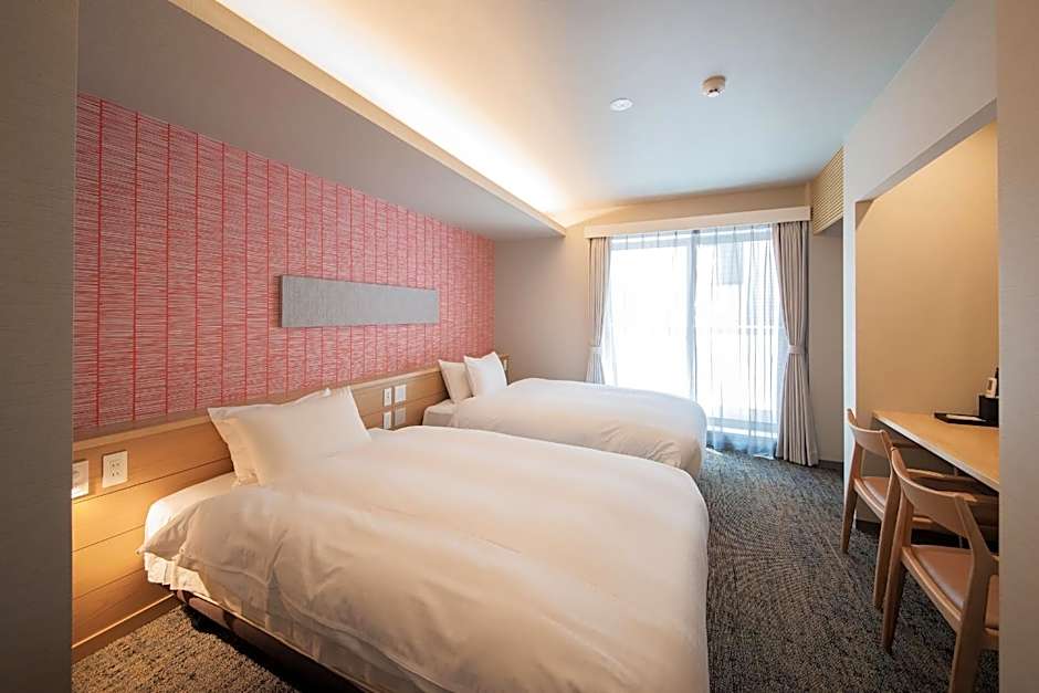 Modern room with two comfortable twin beds, soundproofed for a good night's sleep, and a private bathroom. Enjoy the balcony and fresh air purifiers for a pleasant stay.