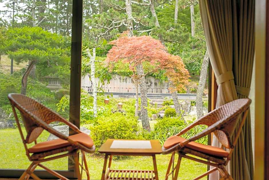 Features a bathtub made of Hinoki wood and a garden, from where guests can walk to the Miho Pine Grove.