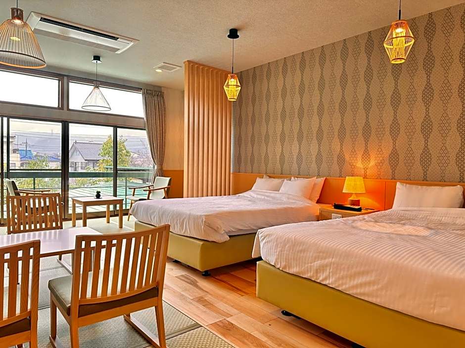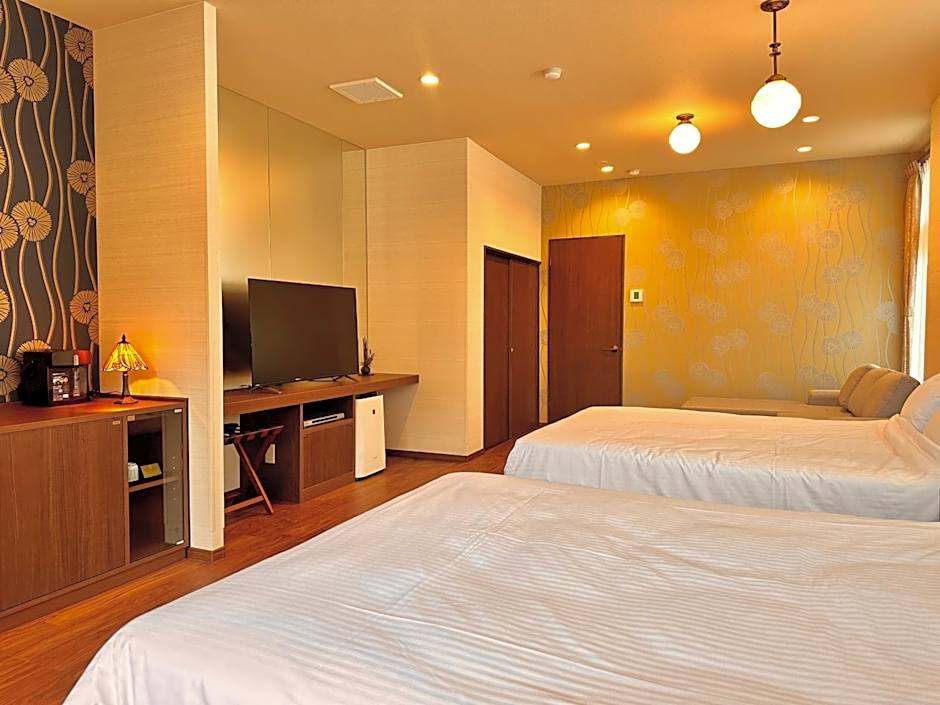 Guests will have a special experience as this quadruple room offers a hot tub. The quadruple room includes a private bathroom, well-fitted with a bath, a shower, a bidet, a hairdryer and slippers. The quadruple room features tatami floors and provides air conditioning, a dining area and a quiet street view. The unit offers 2 beds and 2 futons.