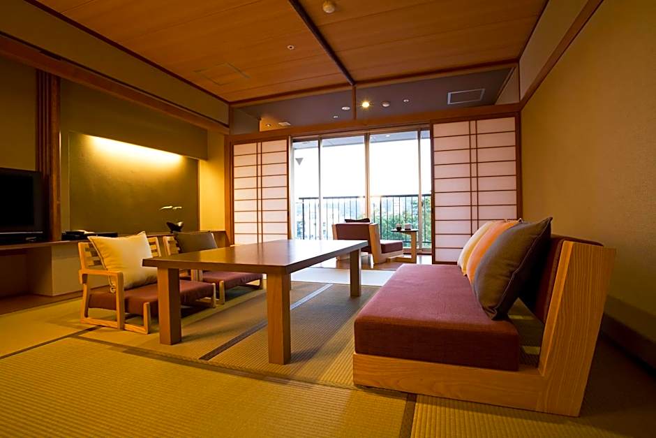The quadruple room includes a private bathroom, well-fitted with a bath, a shower, a bidet, a hairdryer and slippers. The spacious air-conditioned quadruple room offers a flat-screen TV, tatami, a mini-bar, a seating area as well as sea views. The unit offers 5 futons.