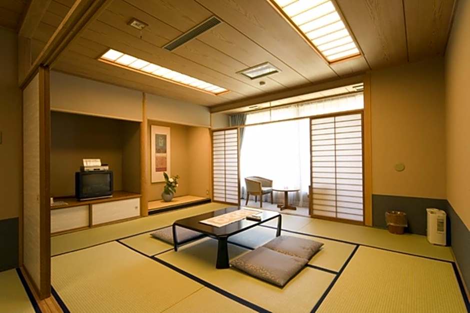 The quadruple room offers tatami, a tea and coffee maker, a wardrobe, a flat-screen TV with satellite channels, as well as a quiet street view. The unit offers 4 futons.