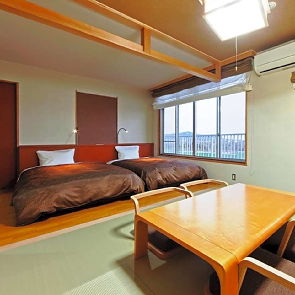 The twin room features air conditioning, tatami, a safe deposit box, yukata, as well as a TV. The unit has 2 beds.
