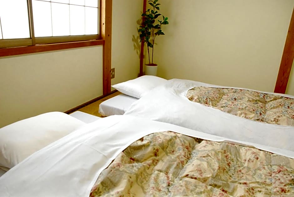 The quadruple room includes a shared bathroom, well-fitted with a bath, a shower, a hairdryer and slippers. The quadruple room provides tatami, heating and mountain views. The unit offers 4 futons.