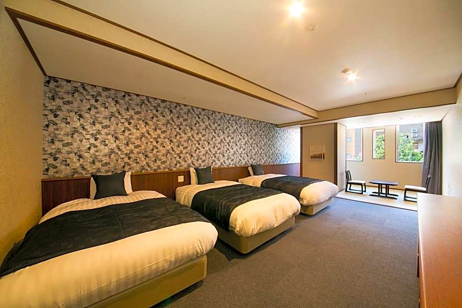 The spacious triple room features air conditioning, a seating area, as well as a private bathroom boasting a bath and a shower. The triple room provides a wardrobe, a safe deposit box, an electric kettle, yukata and a flat-screen TV with satellite channels. The unit has 3 beds.
