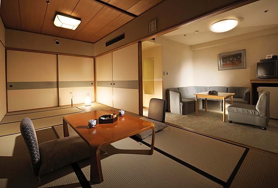 Located on the 7th floor, the surperior room features furniture made of Hida, local wood. Japanese futon mats are provided for bedding to be spread on the tatami (woven-straw) floors. The room includse air-conditioning and a seating area.