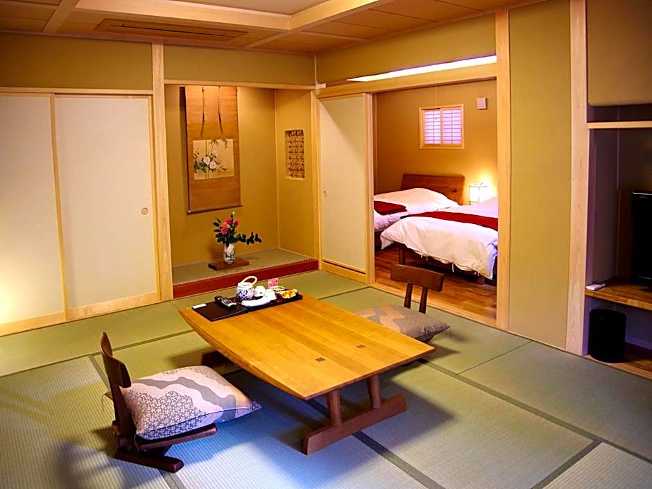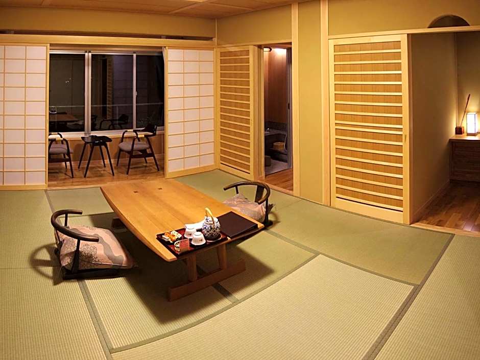 Featuring a private open-air hot spring bath and a seating area on tatami (woven-straw) flooring, this room comes with 4 traditional Japanese futon mats.