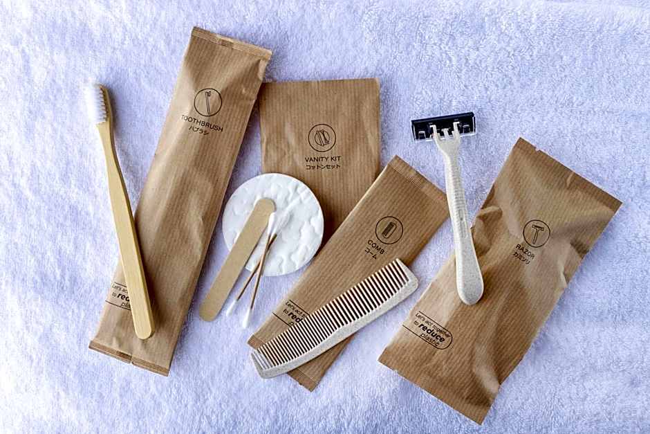 The breakfast was excellent with lots of fresh fruit and salads, Japanese dishes and Western dishes. The location was easy to walk to and from eateries and sights. The plastic-free amenities and the aluminum can of water instead of plastic was all fantastic. The beds were comfortable and the rooms were quiet despite being next to a train line. The onsen was nice and the shampoo, body soap, conditioner in reusables all great quality.
