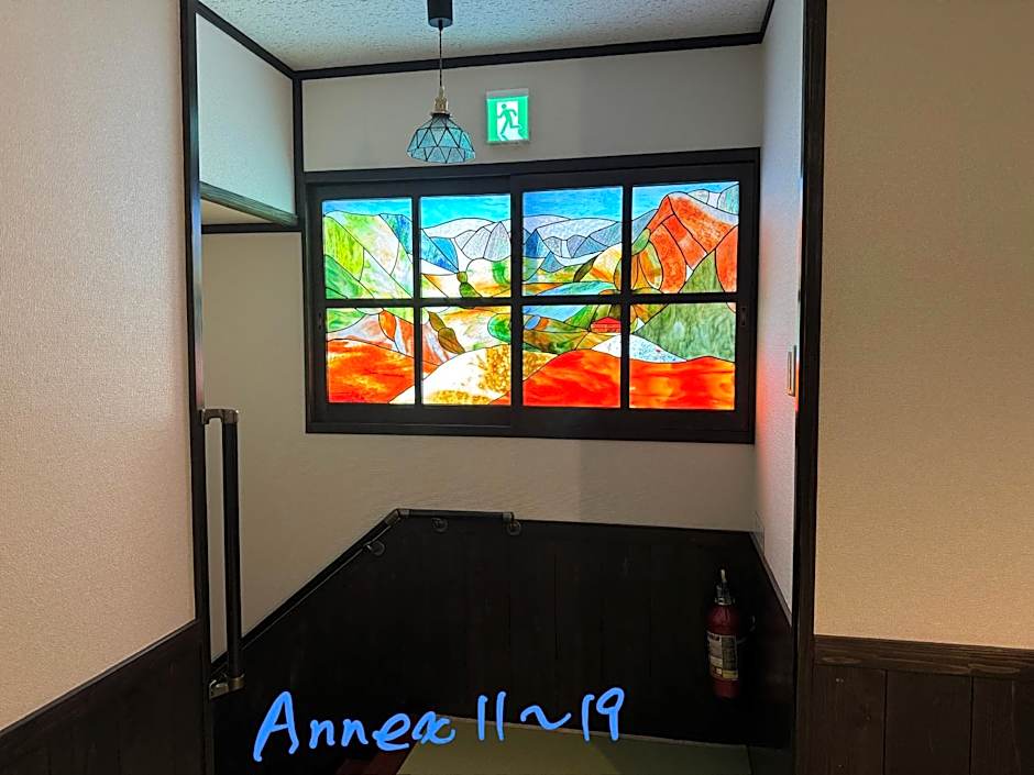 This place is a jewel! The Tiffany-style glas art in every room and corridor, with local themes (mountains, flowers) creates a wonderful atmosphere. 3 nice onsen baths (no sulfur smell) that you can use when they are free without booking (no wait while I was there). Language is no problem even if guests don’t speak Japanese, since the owners have anticipated all questions you reasonably might have. There are instructions and videos (e.g. for how to make your futon) everywhere they are needed. Even tablets with other foreign languages than English were available. Futon and pullow were very comfortable (if you have ever had back pain from futons that were trendy in the 1990s (in Europe), forget those; Modern Japanese futons are very comfortable). Other guests were considerate, so it was quiet. In the lounge there is a microwave, hot water, tea and coffee, and even breakfast pastries during my stay. The location is great if you want to go to Kamikochi and Shin-Hotaka, both of which are 30min by buss.
