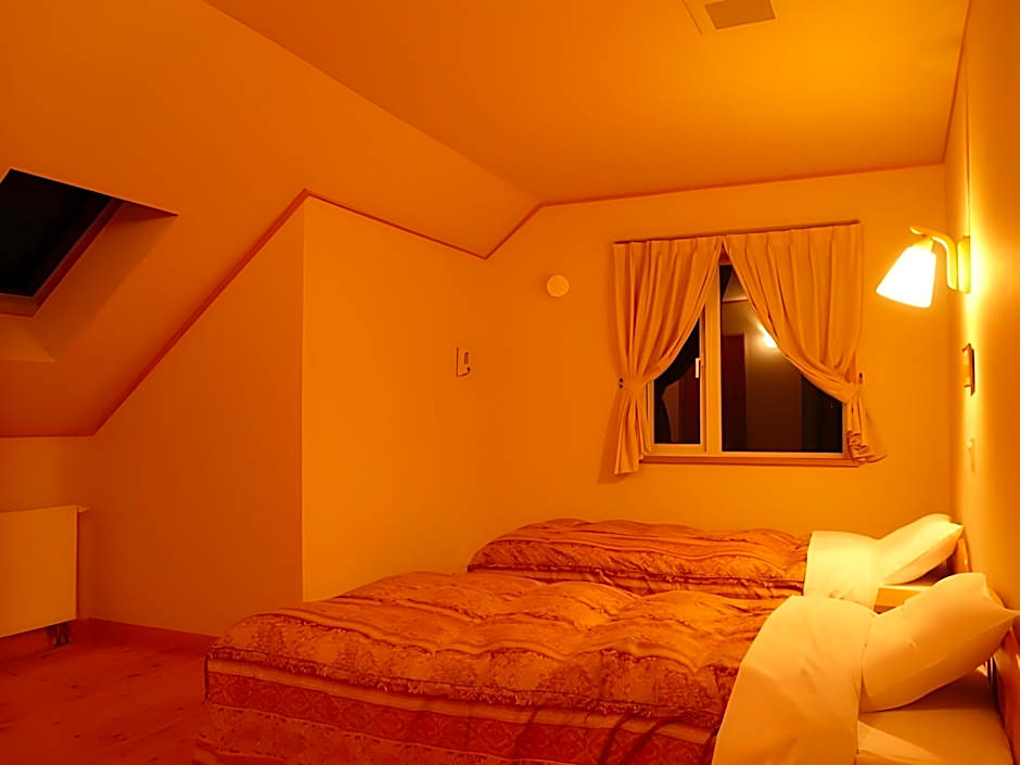 This lovely place is in a forest-like environment and you will need the GPS to find it. It's beautiful and quiet with trees all around and the hosts are very welcoming and accommodating. Dinner and breakfasts are available at extra costs. We arrived late so only had breakfast which was substantial and delicious. There is a choice of a Western or Japanese breakfast. The room was large, super clean, and the beds were very comfortable. In the room is a toilet and a wash-handbasin area. The showers/onsen is downstairs. The onsen was very clean and wonderfully hot. There is a lounge and dining room downstairs. It was very nice to chat with other guests and the owners.
