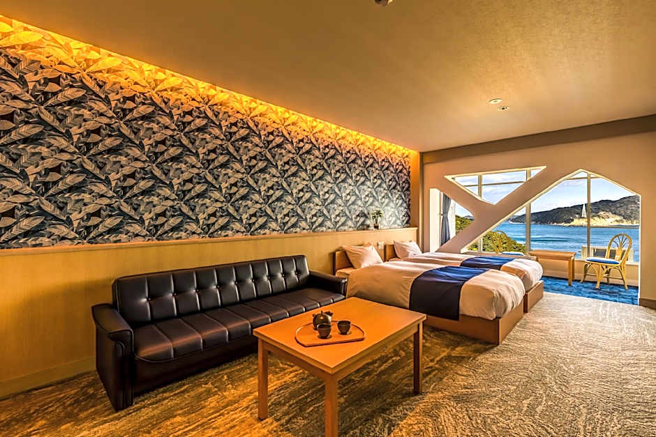 The twin room provides heating, as well as a shared bathroom boasting slippers. The spacious air-conditioned twin room features a flat-screen TV, tatami, an electric kettle, yukata as well as sea views. The unit has 2 beds and 2 futons.