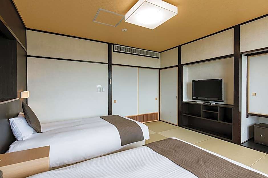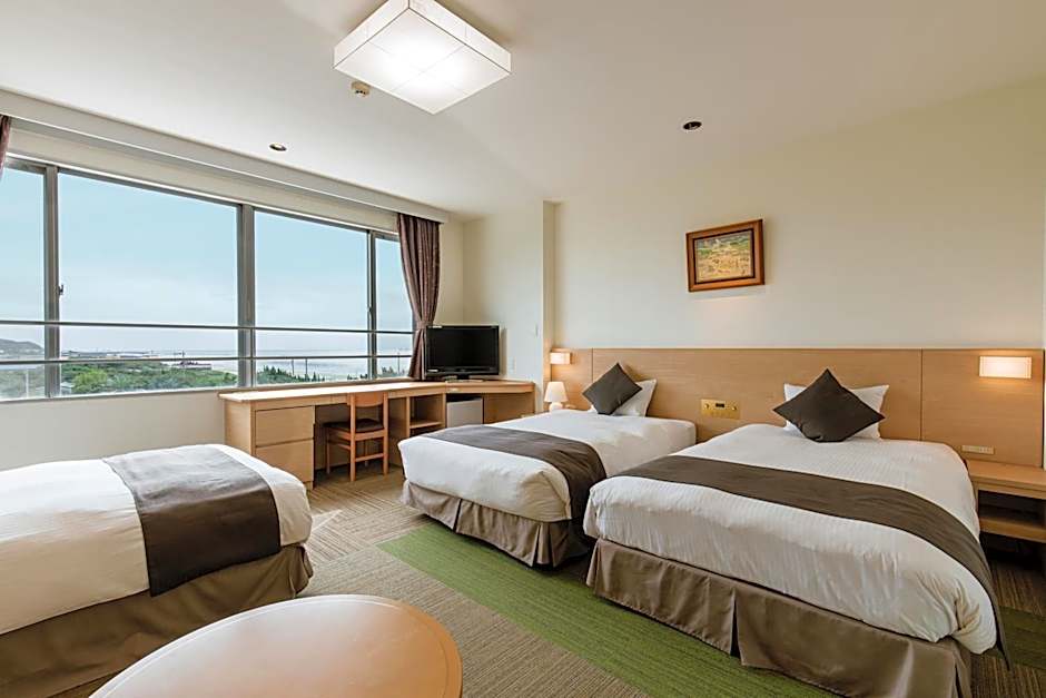 The quadruple room includes a shared bathroom equipped with a bidet, a hairdryer and slippers. The air-conditioned quadruple room offers a flat-screen TV, tatami, a wardrobe, a safe deposit box as well as sea views. The unit offers 4 futons.
