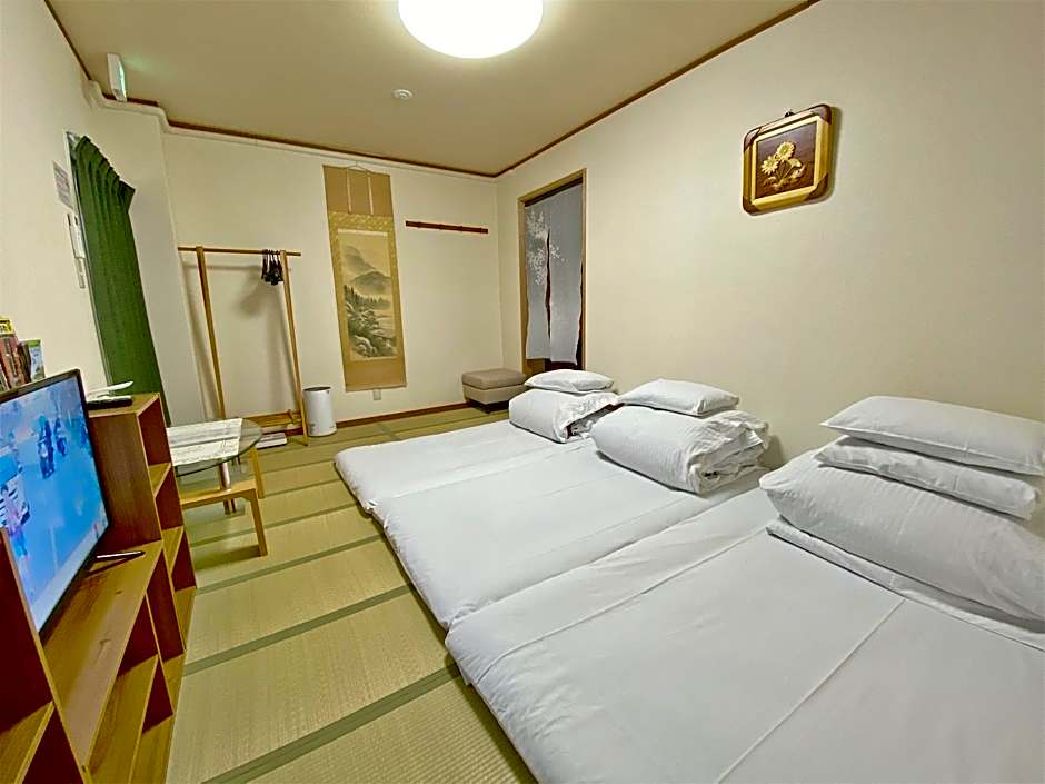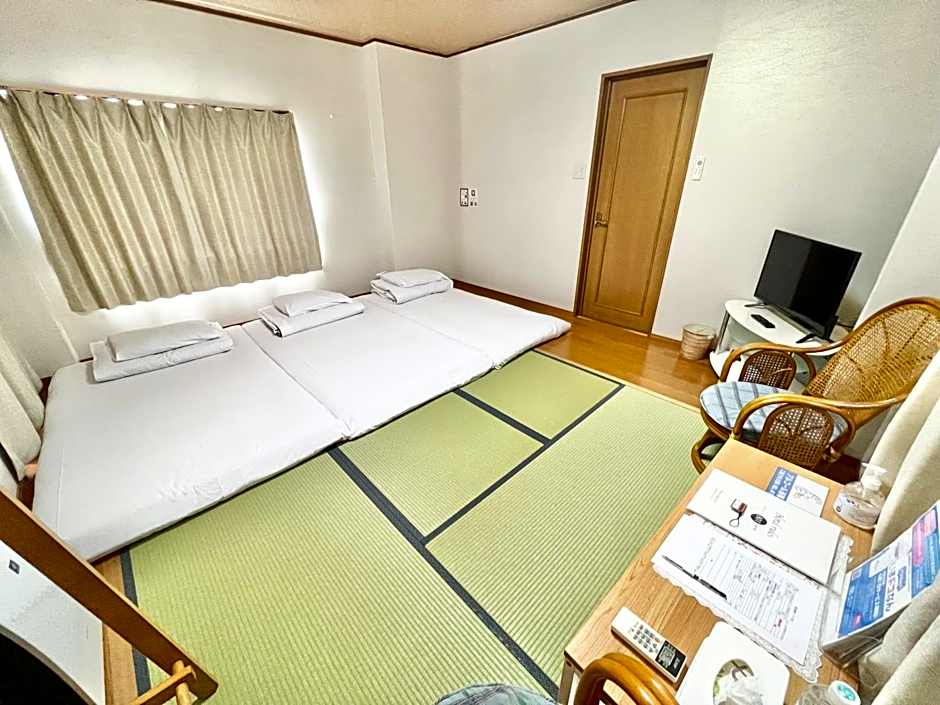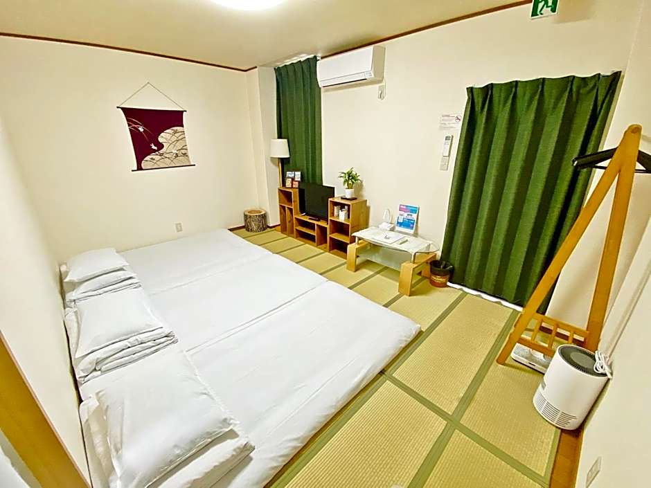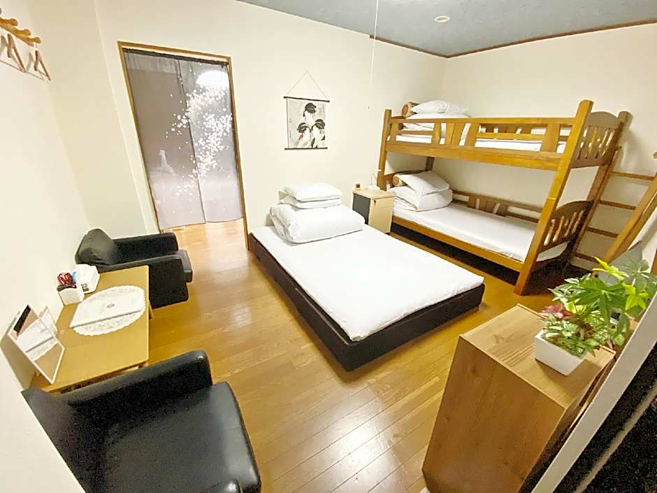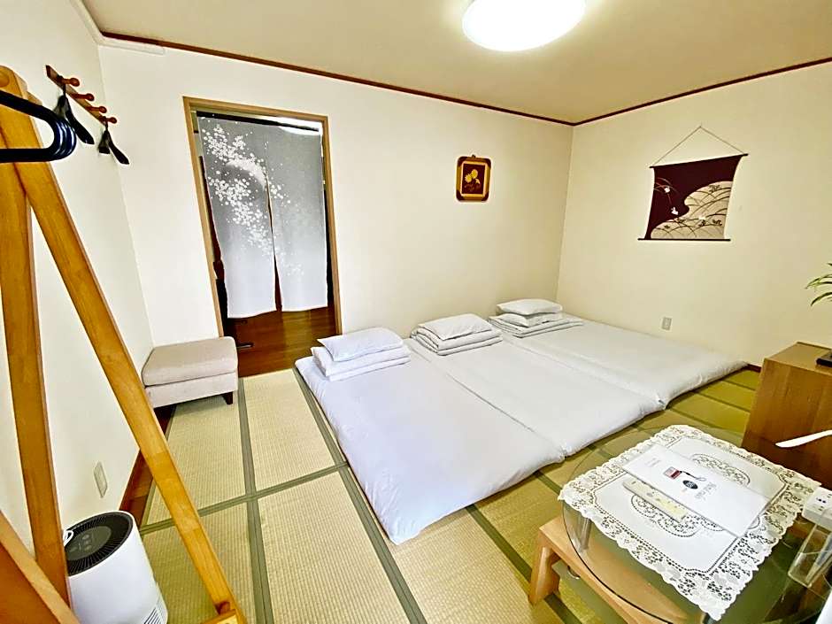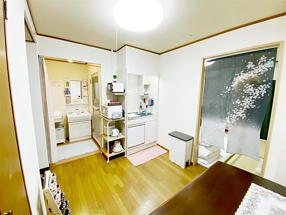 This family room features a hot tub. The family room includes a private bathroom, well-fitted with a bath, a shower, a bidet, a hairdryer and slippers. In the fully equipped kitchenette, guests will find a refrigerator, kitchenware, a microwave and a toaster. The spacious air-conditioned family room provides a flat-screen TV with cable channels, a washing machine, tatami, a tea and coffee maker as well as a quiet street view. The unit offers 8 futons.
