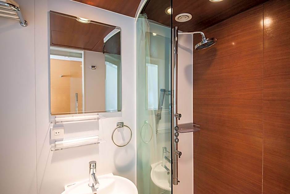 Air-conditioned room with an simple stylish design and a shower booth. Guests can make a fresh cup of tea and enjoy watching the satellite flat-screen TV.