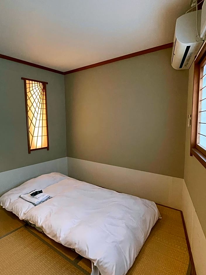 The family room offers air conditioning, tatami, as well as a private bathroom featuring a bath and a shower. The family room features a flat-screen TV, a safe deposit box, yukata and heating. The unit offers 4 futons.