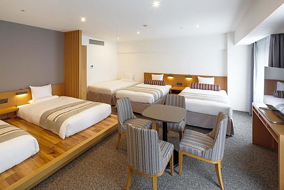 Grand Deluxe Fourth, Non Smoking (4 Twin Beds and 1 Double Sofa Bed) is 603 square feet and includes a double bed 131-150 width plus desk, hairdryer, and safe.