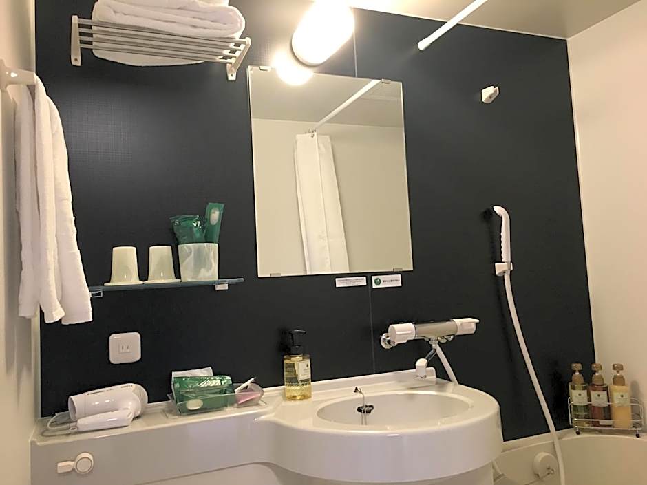 The compact, air-conditioned rooms include a tea maker and yukata robe. A bathtub and hairdryer are equipped in the private bathroom. Video-on-demand programs are available.
