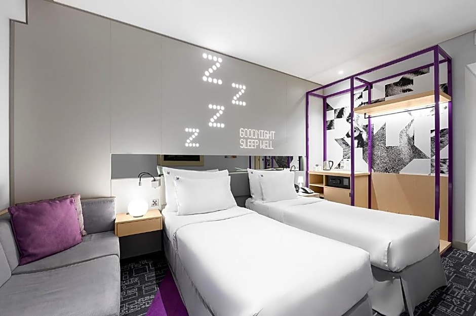 This twin room features complimentary high speed wired and WiFi internet access, a 43-inch Smart LED TV, complimentary tea and coffee tray and safe box.
