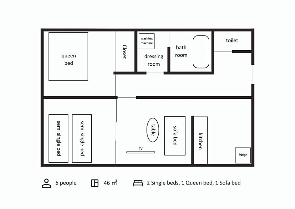 This spacious suite comes with 1 living room, 2 separate bedrooms and 1 bathroom with a bath and free toiletries. The kitchenette features a refrigerator, kitchenware and a microwave. The suite features air conditioning, a washing machine, an electric kettle, heating, as well as a flat-screen TV. The unit has 4 beds.
